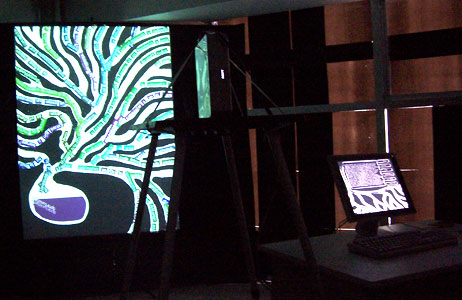 fotografías de la instalación en la exposición de Arte Digital Latinoamericano en CENTRO, México D.F., agosto 2004